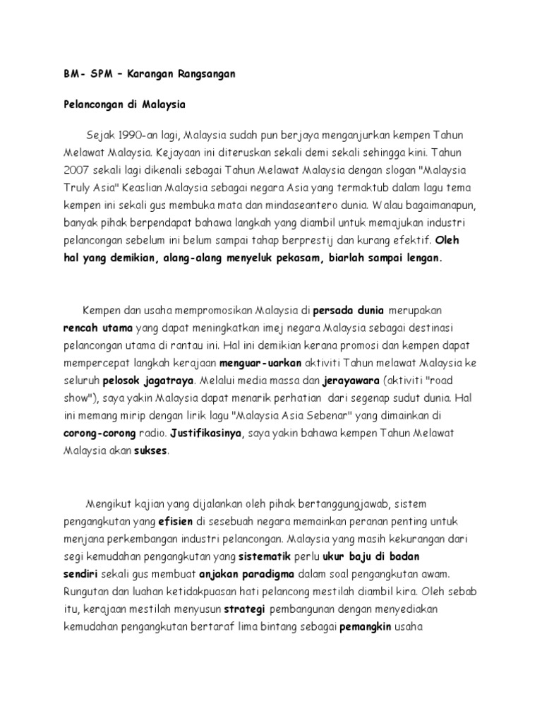 Bm Spm Karangan Pelancongan Pdf